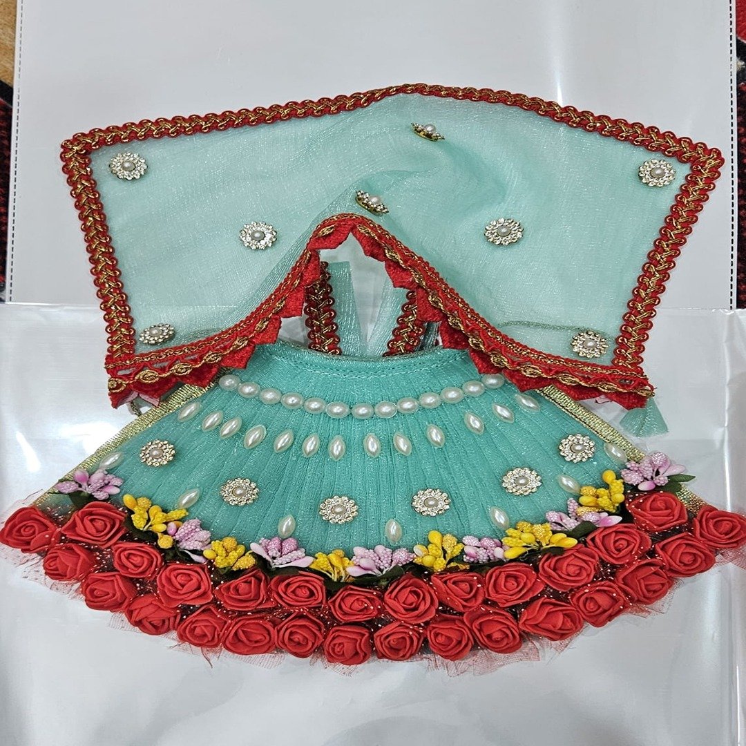 The skirt is crafted in soft net cloth, embellished with a line of pearl beads at the waist and drop-shaped pearls radiating down, giving a shimmering, divine look.